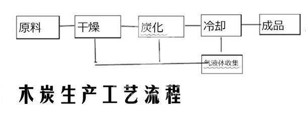 在炭化過程中,木材中的有機物被熱解,形成了揮發(fā)性有機物和固體木炭。高溫炭化過程中,揮發(fā)性有機物分解產生大量可燃液體(醋酸、甲醇、木焦油等)和可燃性氣體(甲烷、乙烯等),這些可燃性氣體通過煙氣回收凈化系統(tǒng)過濾后返回燃燒室內燃燒,升高木材炭化設備的爐溫,將木材原料在高溫下干餾成木炭。